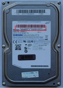 Na tym dysku numer seryjny jest umieszczony dość typowo – pod kodem kreskowym. Najczęściej kod kreskowy następuje po oznaczeniu S/N (od ang. serial number).